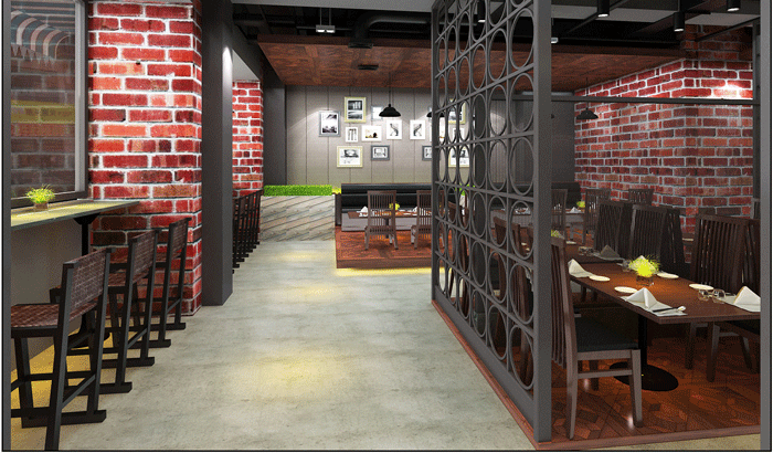 設計理念:港式工廠風主題餐廳裝修設計,它正宗美味的港式風格吸引著食客們的前來,吸引這客戶來這里小憩一下,嘗嘗地道的港式美食,濃香咖啡、誘惑的特飲、奶茶、各式港式茶點、時尚下午茶,是您在輕松的愜意氛圍中享受美食、體驗快樂。