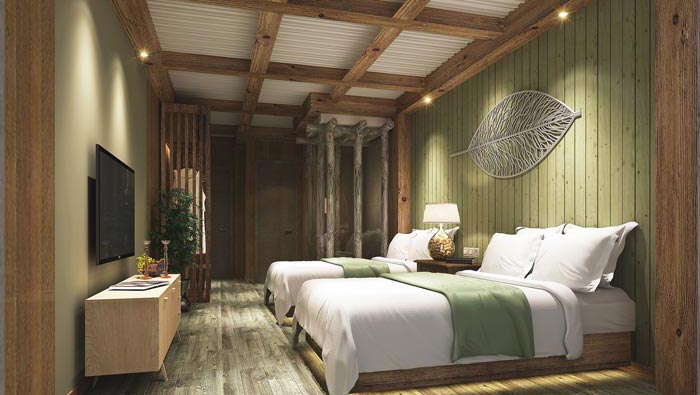 本次為主題概念酒店裝修設計項目,設計師在于客戶的交流中,了解到客戶希望打造一個休閑、遠離都市、潮流的概念酒店,這就對設計師提出了一個新的難題,就是如何去把握這樣的想法,最后設計師在考察過現場之后,與客戶邊走邊交談,最后設計師將設計理念定位于“個性與原創、舒適與環保”。