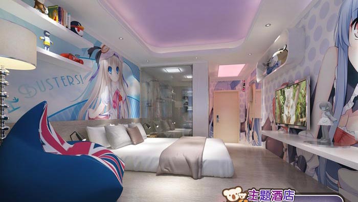 漫畫宅男客房的設計:漫畫是一種藝術形式,用簡單而夸張的手法來描繪生活或時事的圖畫,但是相信大家所接觸的漫畫不是漫畫書就是電視,大家真的親身體驗過嗎,相信大家都會說不,這也是酒店為大家準備的意外之喜,在這里讓大家親身的體驗一下動漫的世界,讓大家不虛此行。