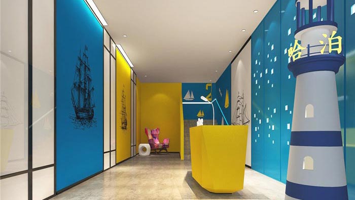 本次為港灣主題酒店裝修設計項目,設計面積在1500平方,設計師在與客戶的交流中,了解到客戶希望給大家營造一個避風、避浪、安全停泊的場所,這是客戶游歷海洋之后突發的靈感,因為對于很多人來說,海洋是一個未知的區域,讓人充滿了好奇、神秘,客戶就是希望將其搬上陸地,讓更多的人可以感受到。