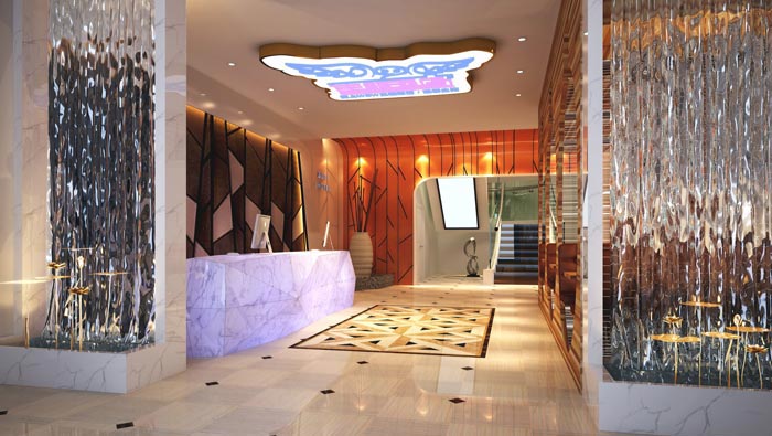 前臺的設(shè)計:在酒店的整體造型上面,設(shè)計師大致尊崇的是向內(nèi)收縮的設(shè)計格局,設(shè)計師在設(shè)計中通過對酒店客房的估算,以此估算出一天的最高人流量,然后流出預(yù)估的空間,即滿足了需求,同時在空間的設(shè)計上面也可以做到量力而行。