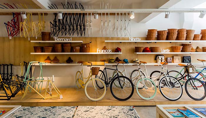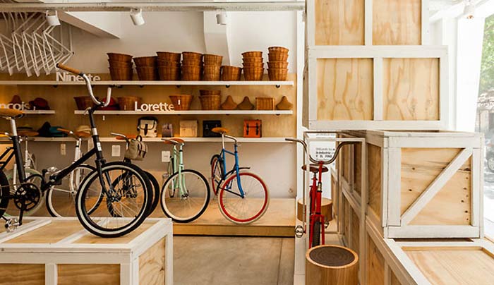 設計理念:工業元素自行車店一家專營自行車的店鋪,設計師在自行車店鋪裝修設計的時候將自行車的工業元素與木質元素融合,搭配藤編的籮筐,使得顧客瞬間被帶回到清新緩慢的狀態。