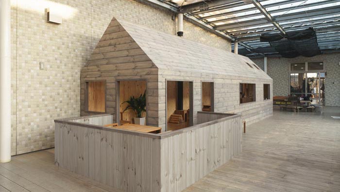 室內整體的設計:一眼望去簡單且富有規律,這也是設計師不斷優化下的作品,此處主要是根據孩子的興趣創造的,在設計師看來孩子最喜歡的就是模仿大人,故此設計師以現實生活為模型,為孩子們創造了一個與現實生活接軌的空間,在這里孩子們可以學會來自生活的各種技能。