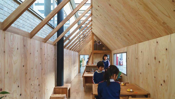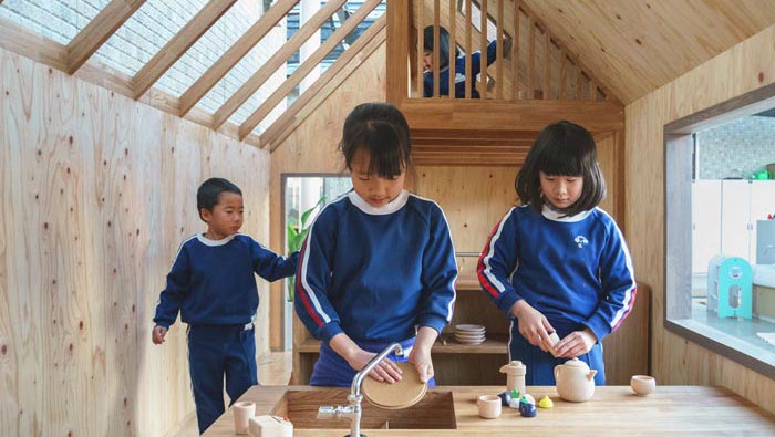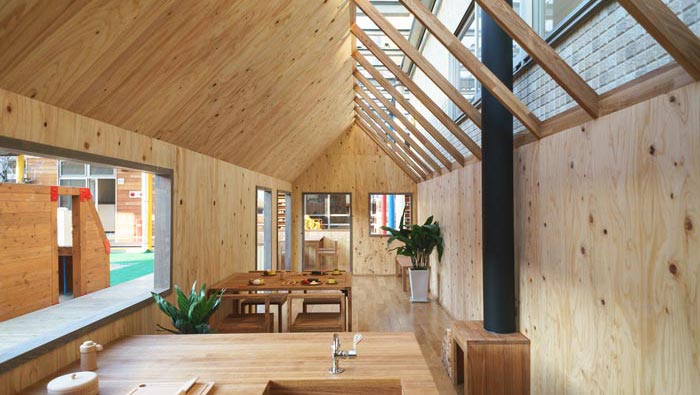 內部空間的設計:從內向外看可以看出整個空間條理十分清晰,目的就是不希望阻礙孩子的創造力和好奇心,在這里教會孩子不斷理清事物,有鮮花裝飾的桌子,用餐時讓孩子自己安排自己的菜肴,在飯后小孩子自己去洗碗,目的就是為了鍛煉他們動手的能力,讓孩子們在不斷學習中成長起來。